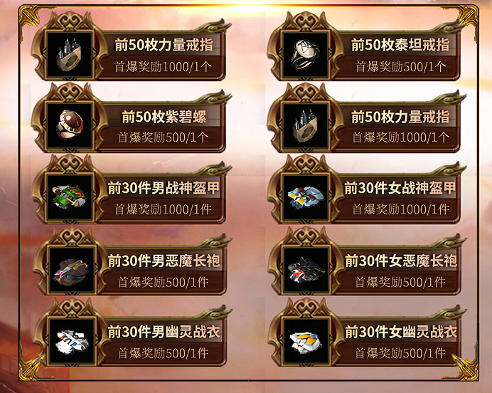 新区将在抖音、快手、B站、搜索引擎、商盟等自媒体推广渠道投入38万RMB广告宣传,百万奖励助力新服。 《烽烟再起》测试服将于10月18日(周六)14:00准时开启,10月30日封测,官方建议玩家参与测试进游戏下载微端,了解游戏设置、玩法、爆率。(测试期间免费模式,不需充卡) 测试达到35级的玩家奖励:年卡 x 1,35级很简单,助您免费畅游蓝月!(A区B区都可领取年卡奖励) 测试攻城奖励:20000 元 【地图开放】 【全新版本 适合普通上班族玩家】 蓝月1.76《帝释天魔》月卡版,是一款即时PK制的MMORPG游戏,游戏包括了经典的三职业角色,以及铭文、附灵、重铸等各类玩法,游戏主线围绕复古、经典,金币装备一切靠打, 挖矿、升级、打宝、抢怪,让你一秒穿越,游戏设定了大量适合上班族普通玩家的玩法,只要你有耐心、有技巧,也能闯出属于自己的天空。 【回馈玩家 海量福利】AB新服活动双重、奖励双份! 福利一、玩家装备保值策略在游戏内打到以下装备可领取500-2000不等的丰厚首爆奖励,为玩家的游戏体验保驾护航。 玩家打到以上装备,首爆奖励自动获得。 福利二、高手快人一步,自《烽烟再起》开服起 第一位拥有“斩月印”的玩家,将获得10000元幸运奖励! 第二位拥有“斩月印”的玩家,将获得5888元幸运奖励! 第一位拥有“天兽印”的玩家,将获得5000元幸运奖励! 第二位拥有“天兽印”的玩家,将获得2888元幸运奖励! 第一位拥有“雷绝印”的玩家,将获得5000元幸运奖励! 第二位拥有“雷绝印”的玩家,将获得2888元幸运奖励! 福利三、【命运大师】遥遥领先 自《烽烟再起》开服起通过“命运之刃”任务出产的第一把“命运之刃+7”的幸运玩家,将获得3888元的幸运奖励、第二把1888元、第三把888元幸运奖励! 福利四、【武器锻造大师】祝融高手 新区通过“武器升级”第一位成功将“武器升级+7”的玩家,将获得3888元奖励!第二把1888元、第三把888元幸运奖励!(活动入围武器包含:命运之刃、魔杖、炼狱、井中月、无极棍、龙纹、骨玉权杖、裁决之杖等高阶武器系列) 福利五、【新服冲级】散人练级狂人 在新区《烽烟再起》中,等级达到43级的玩家均可以获得价值88元的:蓝月老玩家尊享鼠标垫实物奖品一份 注:奖品共1000份,达到等级即可领取,活动限时60天 【沙城争霸、霸主归来】 《烽烟再起》服务器攻城奖励预计共10万元 此外,官方可能会视服务器情况调整或增加活动奖励,详细攻城时间关注公告。 |